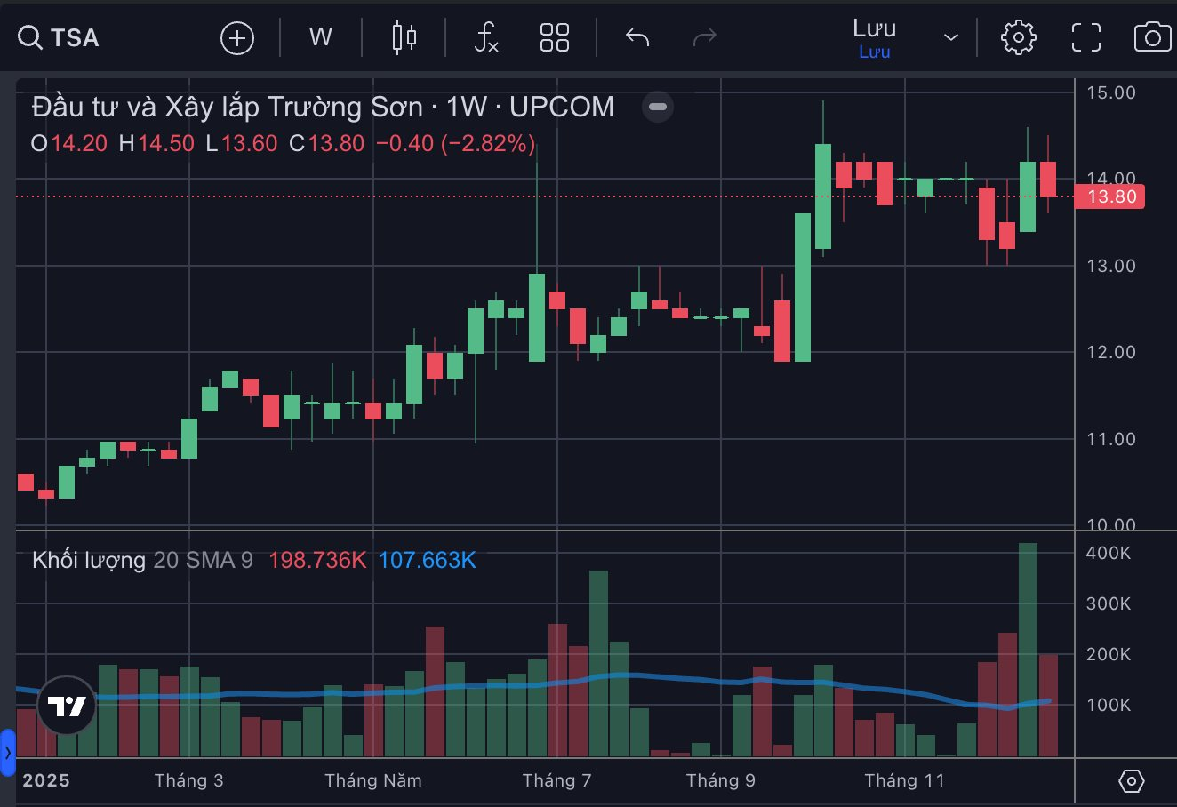 Để chuẩn bị cho việc chuyển sàn, cổ phiếu TSA sẽ hủy đăng ký giao dịch trên thị trường UPCoM vào ngày 26/12, đồng nghĩa ngày 25/12 sẽ là ngày giao dịch cuối cùng. Quan sát trên thị trường, cổ phiếu TSA đang giao dịch quanh ngưỡng 14.000 đồng/cp.