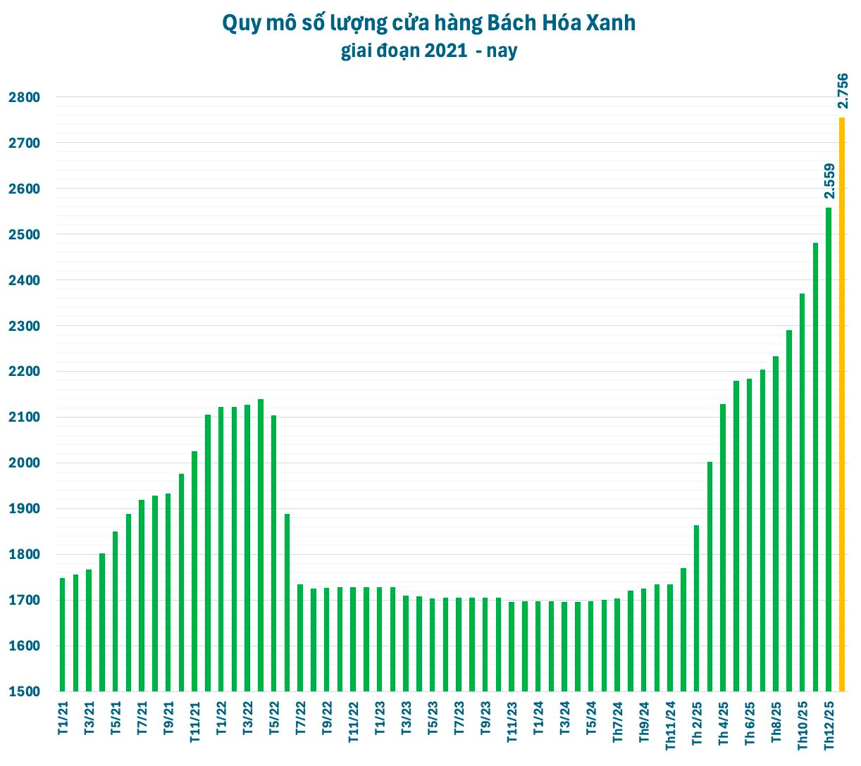 Theo cập nhật trên website bachhoaxanh.com, chuỗi siêu thị bán lẻ thực phẩm và hàng tiêu dùng Bách Hóa Xanh (BHX) hiện có đến 2.756 cửa hàng, tăng gần 200 cửa hàng từ đầu năm 2026. Trung bình mỗi ngày, doanh nghiệp của “đại gia” Nguyễn Đức Tài mở mới 3 cửa hàng. Các cửa hàng mở mới thời gian gần đây chủ yếu tập trung tại miền Bắc và miền Trung.