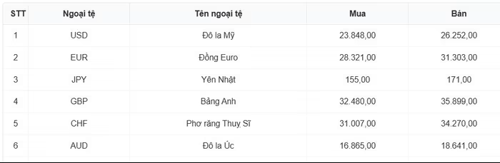 Tỷ giá các ngoại tệ mạnh khác trong giỏ thanh toán quốc tế, tại Ngân hàng Vietcombank được niêm yết như sau: