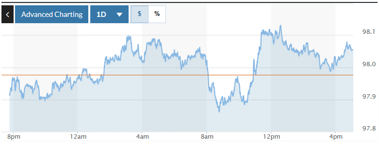 Biểu đồ biến động Chỉ số DXY trong 24 giờ qua. Ảnh: Marketwatch