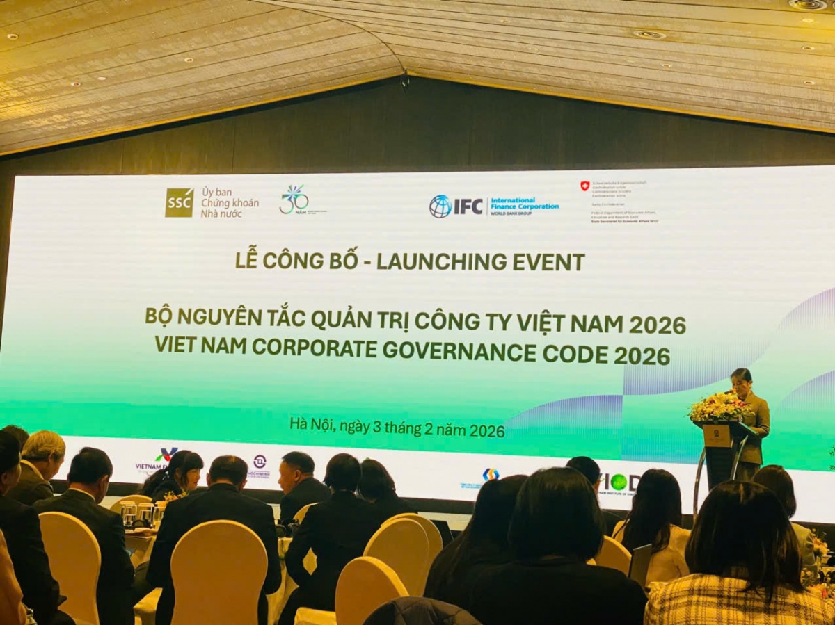 Ngày 3/2/2026, Ủy ban Chứng khoán Nhà nước (UBCKNN) phối hợp với Tổ chức Tài chính Quốc tế (IFC) tổ chức Lễ Công bố Bộ Nguyên tắc Quản trị Công ty Việt Nam (Vietnam Corporate Governance Code - VN CG Code). Sự kiện được tổ chức trong khuôn khổ chương trình hợp tác giữa UBCKNN và IFC, với sự hỗ trợ của Tổng cục Kinh tế Liên bang Thụy Sỹ (SECO), nhằm tiếp tục nâng cao chất lượng quản trị công ty tại Việt Nam theo chuẩn mực và thông lệ quốc tế.