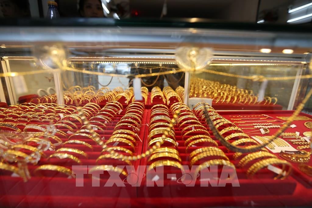 Trang sức vàng được bày bán tại cửa hàng ở Yangon, Myanmar. Ảnh: THX/TTXVN