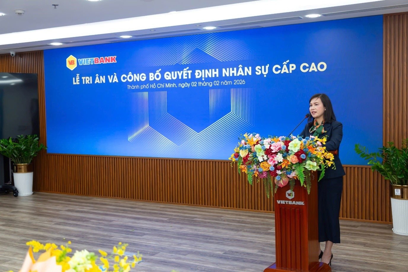 Bà Trần Tuấn Anh - TGĐ Vietbank phát biểu trong buổi lễ tri ân và công bố quyết định nhân sự cấp cao Vietbank sáng ngày 02.02.2025