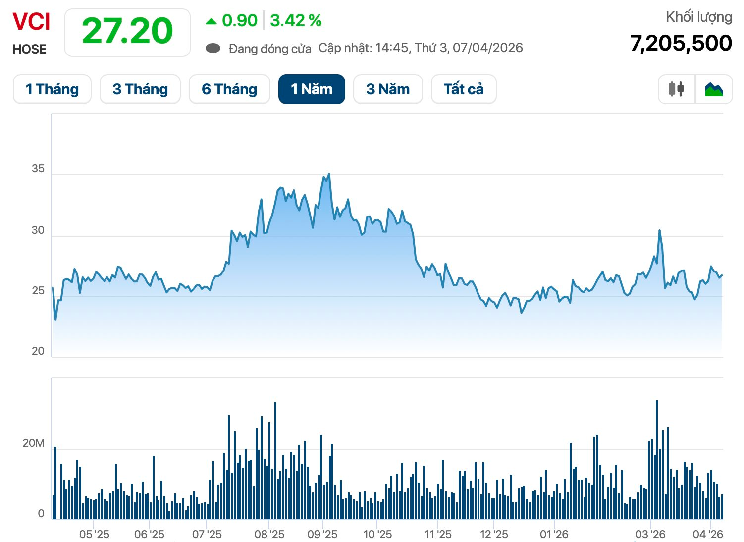 Trên sàn chứng khoán, cổ phiếu VCI đóng cửa phiên 7/4 ở mức 27.200 đồng/cp, tăng 6% so với đầu năm. Ước tính tại mức thị giá này, số cổ phiếu trong tay bà Thiên Kim có giá trị khoảng 460 tỷ đồng.