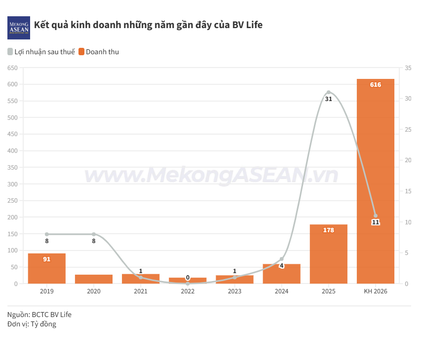 Bước sang năm 2026, BV Life đặt kế hoạch doanh thu hơn 616,3 tỷ đồng; lợi nhuận sau thuế dự kiến còn hơn 11,3 tỷ đồng. Công ty tiếp tục không chia cổ tức năm 2026.