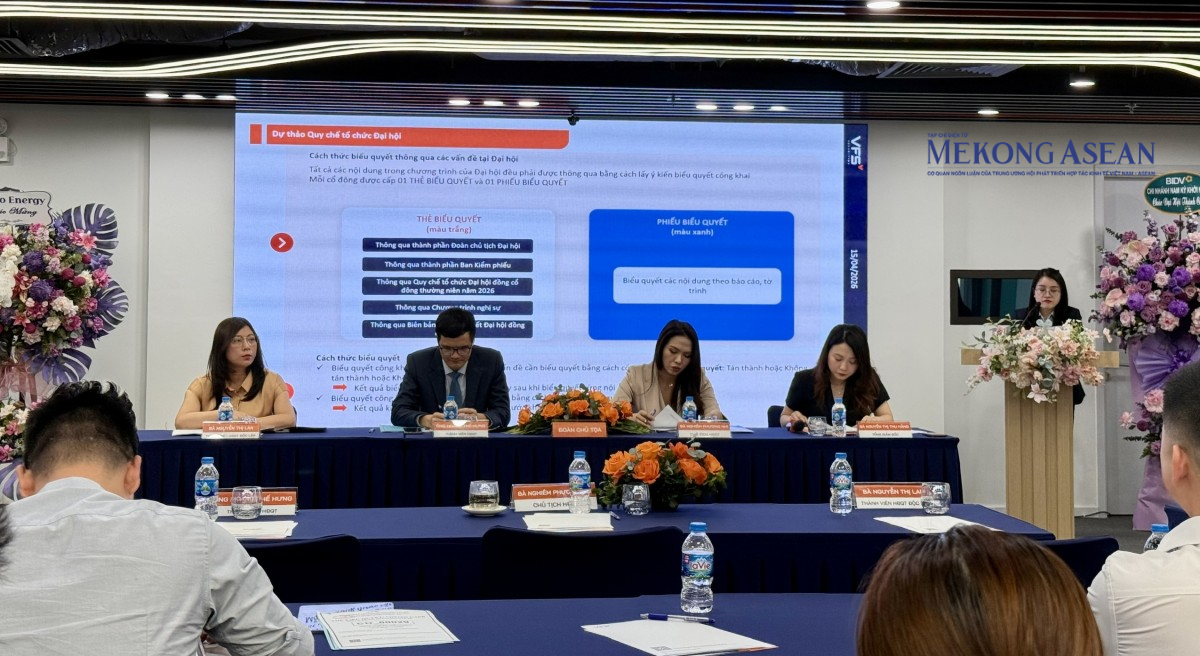 Ban lãnh đạo Chứng khoán Nhất Việt điều hành đại hội. Ảnh: Phạm Ngọc/Mekong ASEAN
