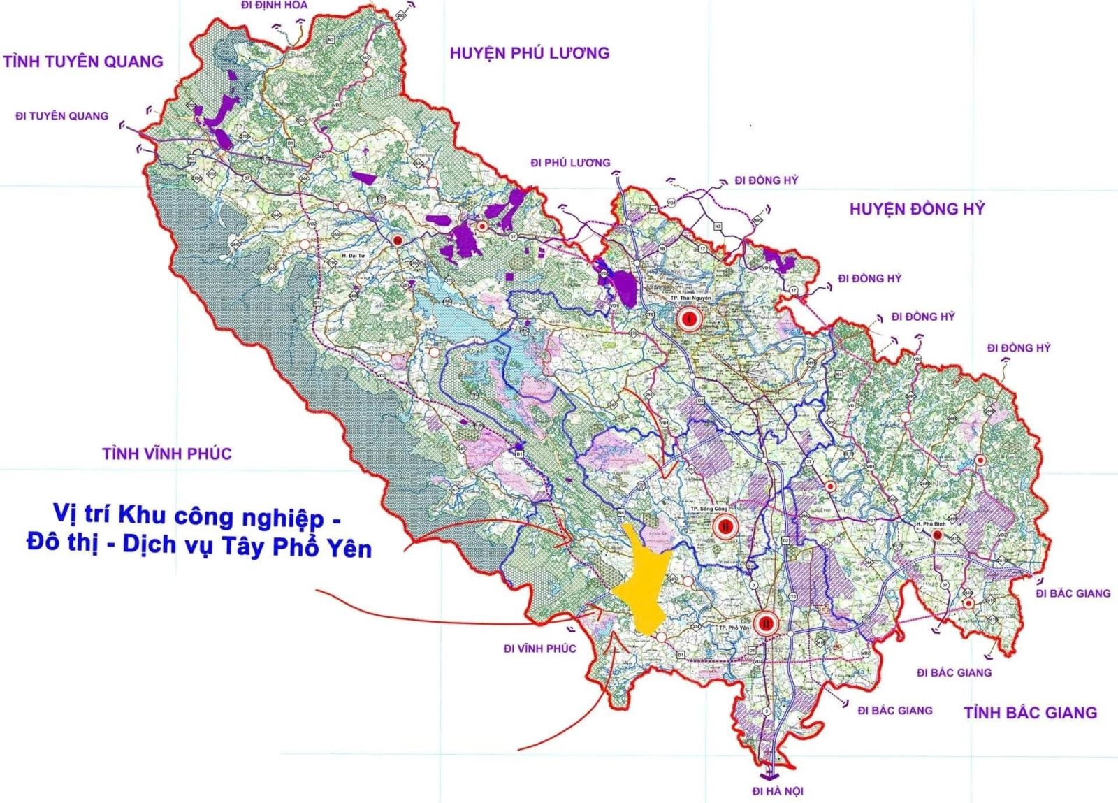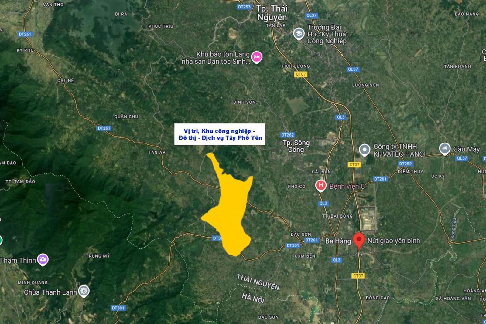 Vị trí tổ hợp Khu công nghiệp – Dịch vụ – Đô thị Tây Phổ Yên (Ảnh: UBND tỉnh Thái Nguyên).