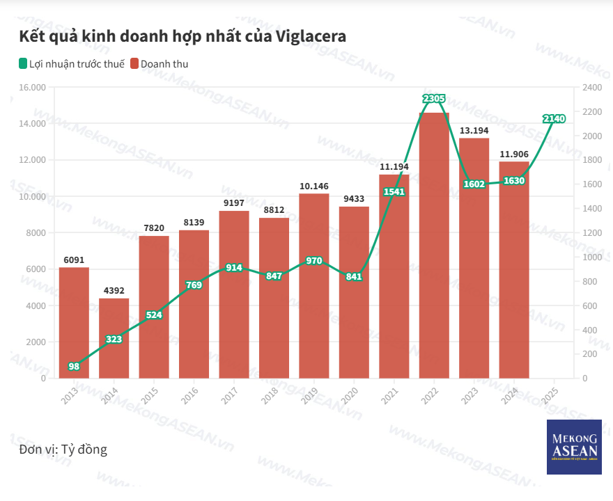 Tổng Công ty Viglacera – CTCP (mã VGC) ước lợi nhuận trước thuế hợp nhất năm 2025 đạt 2.140 tỷ đồng, vượt 23% kế hoạch năm và tăng 31% so với năm 2024.