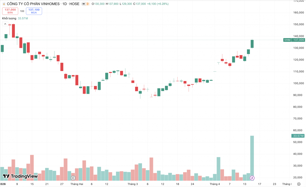 VN-Index tiếp tục duy trì đà tăng tích cực trong phiên 15/4, dù diễn biến thị trường cho thấy sự phân hóa rõ nét. Đáng chú ý, chỉ số tăng tốc trong phiên chiều nhờ lực kéo từ một số cổ phiếu trụ như VIC và VHM. Kết phiên, VN-Index tăng 25 điểm (1,41%) lên 1.800,65 điểm, trong khi VN30 tăng 15,05 điểm ( 0,77%) lên 1.961,60 điểm, vượt vùng kháng cự 1.950 điểm.