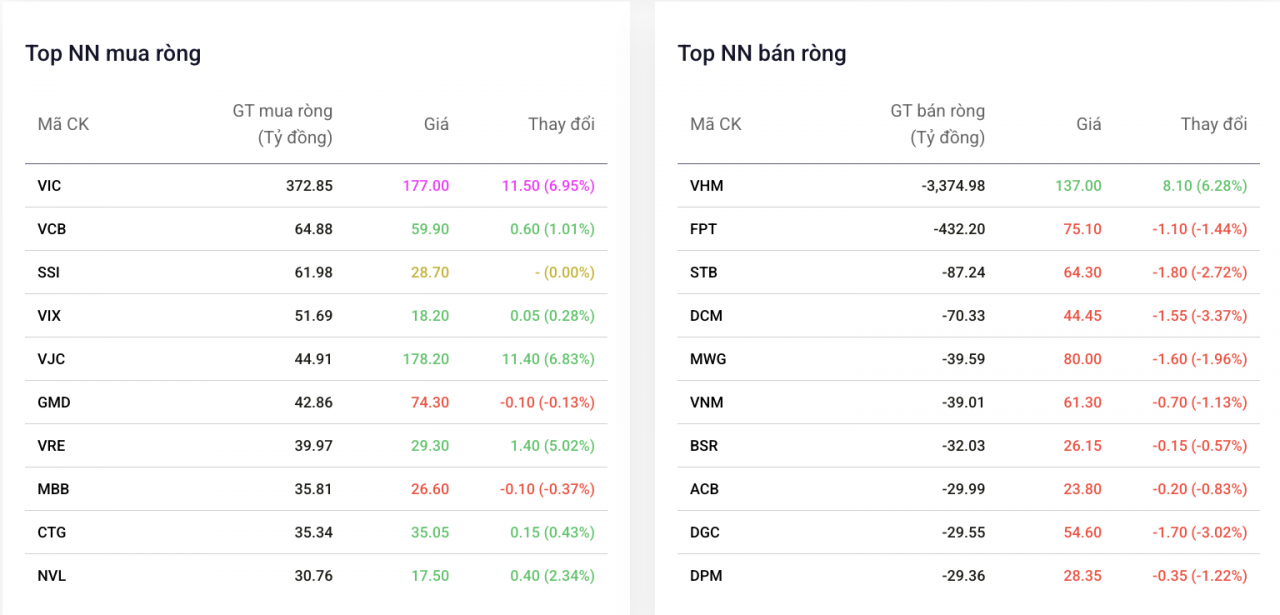 Top cổ phiếu mua/bán ròng trong phiên 15/4