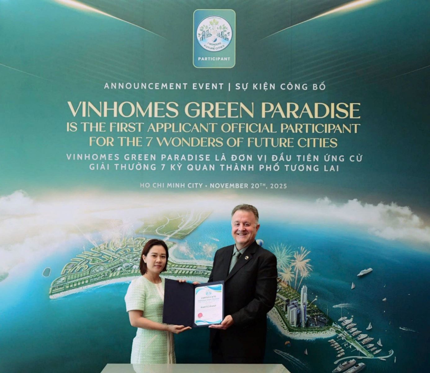 Thực tế, Vinhomes Green Paradise đã tạo tiếng vang trên trường quốc tế khi trở thành ứng viên chính thức đầu tiên của chiến dịch bầu chọn "7 Kỳ quan Đô thị Tương lai" do New7Wonders phát động. Đây không chỉ cột mốc mang tính biểu tượng, còn là lời khẳng định cho niềm tin đặt vào một dự án đầy triển vọng, giàu tiềm năng phát triển trong bức tranh đô thị thời đại mới. Theo mạng lưới các tập đoàn truyền thông hàng đầu châu Á Asia News Network (ANN), với cấu trúc địa lý độc đáo, mặt hướng biển, lưng tựa vào khu dự trữ sinh quyển hàng triệu năm tuổi của Cần Giờ, Vinhomes Green Paradise "được nhìn nhận như một dự án bất động sản chỉ có một lần trong một thế kỷ".