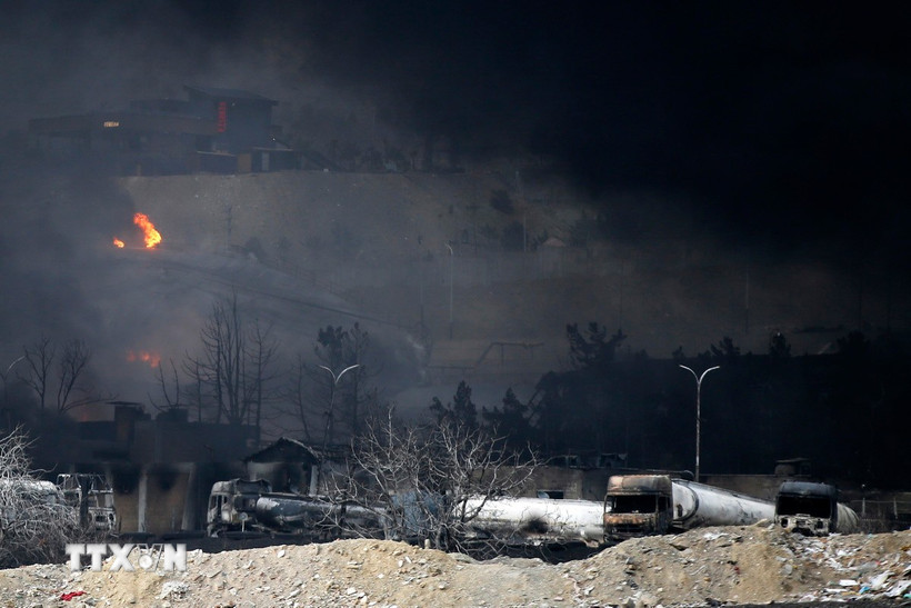 Cơ sở trữ dầu Shehran của Iran tại Tehran là mục tiêu tấn công của lực lượng phối hợp Mỹ-Israel, ngày 8/3/2026. (Ảnh: Anadolu Agency/TTXVN)