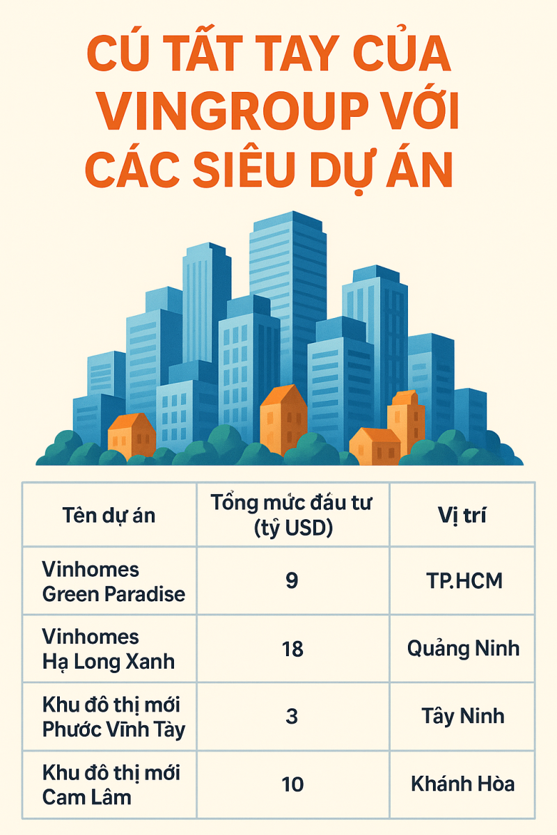 Sự bùng nổ của các dự án siêu quy mô hàng nghìn ha đang định hình lại bản đồ phát triển bất động sản Việt Nam. Tiên phong trong cuộc chạy đua này là Tập đoàn Vingroup, khi chỉ trong năm 2025 và 2026 sẽ khởi công 4 khu đô thị lớn với tổng vốn đầu tư 40 tỷ USD.