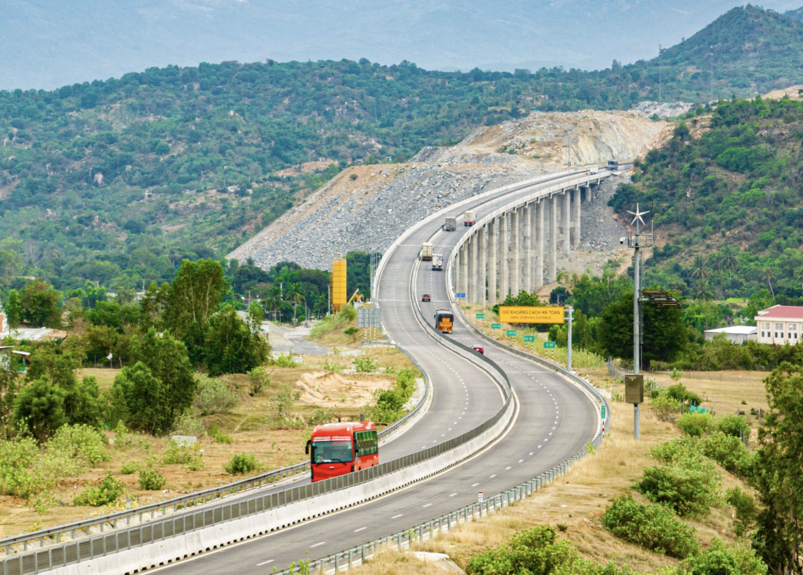Dự án nằm cách Nha Trang 40 phút và cách TP.HCM 5 tiếng di chuyển bằng cao tốc Bắc - Nam phía đông. Dự kiến phân khu đầu tiên sẽ được triển khai vào năm 2026 và vận hành từ quý 4 năm 2028. Trong ảnh là cao tốc Cam Lâm - Vĩnh Hảo.