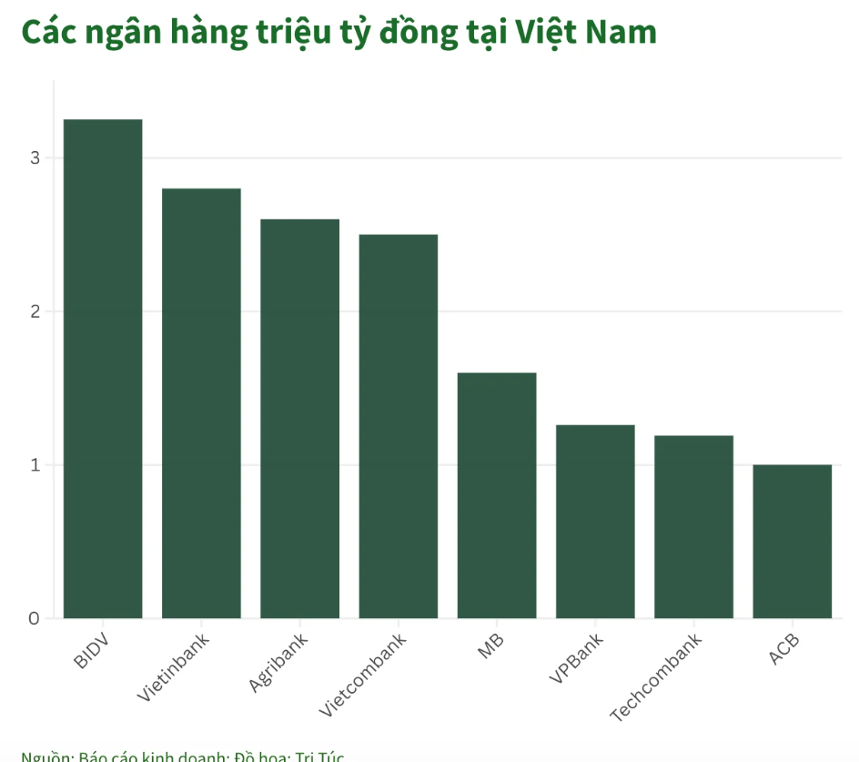 Tiếp đến vào tháng 6/2025, Ngân hàng TMCP Kỹ Thương Việt Nam (Techcombank) gia nhập với tổng tài sản 1,037 triệu tỷ đồng. Tính đến 31/12/2025, tổng tài sản của Techcombank vượt 1,19 triệu tỷ đồng, tăng 22% so với đầu năm.
