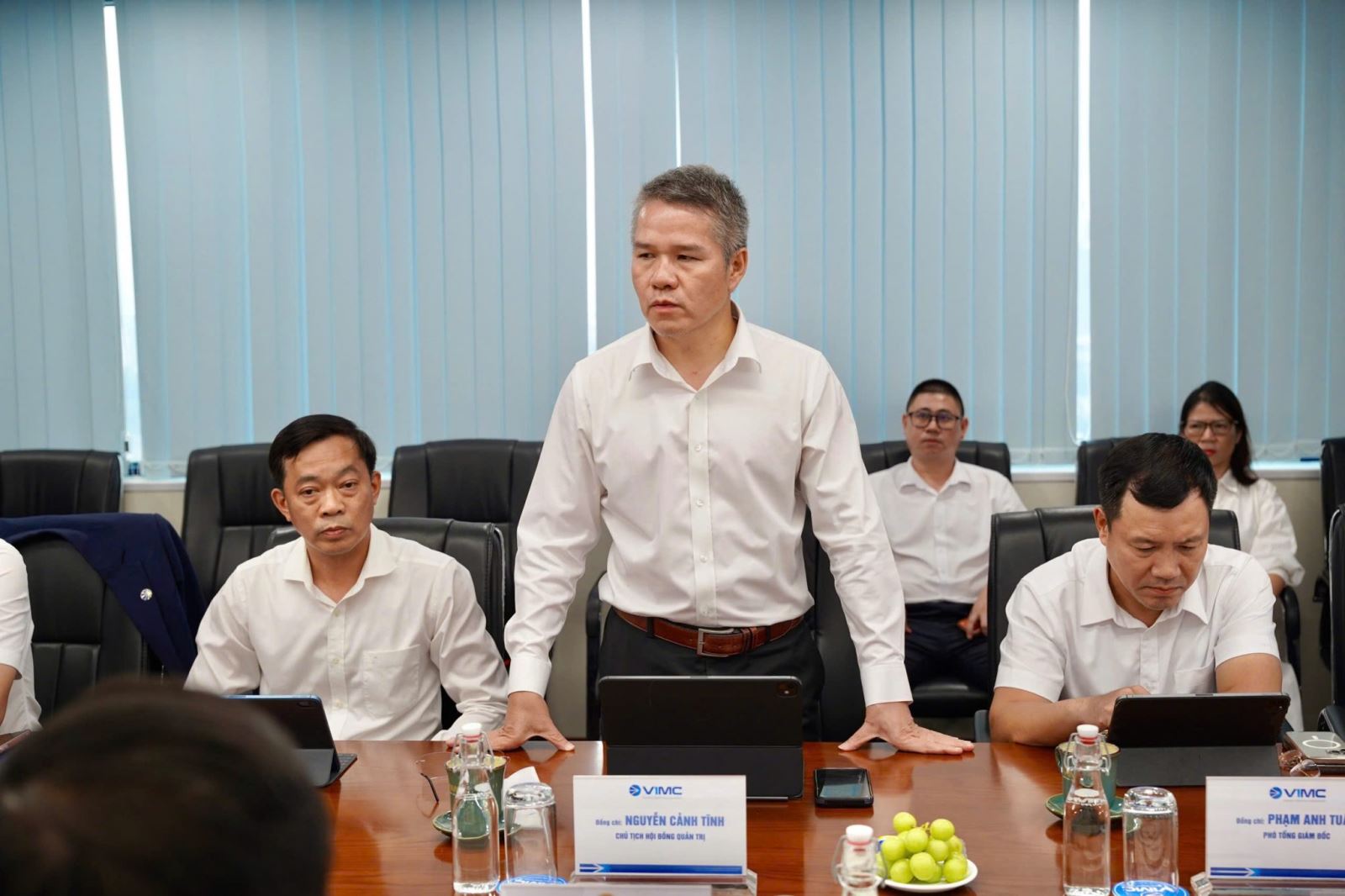 Về phía VIMC, đồng chí Nguyễn Cảnh Tĩnh, Chủ tịch Hội đồng quản trị đánh giá cao tiềm năng, lợi thế cũng như định hướng phát triển của tỉnh Quảng Ninh, đồng thời bày tỏ mong muốn mở rộng hoạt động của VIMC trên địa bàn tỉnh, đặc biệt trong lĩnh vực logistics và hệ thống kho bãi. Là doanh nghiệp nòng cốt của ngành hàng hải Việt Nam, VIMC hiện phát triển theo ba trụ cột sản xuất kinh doanh chính gồm khai thác cảng biển, vận tải biển và logistics.