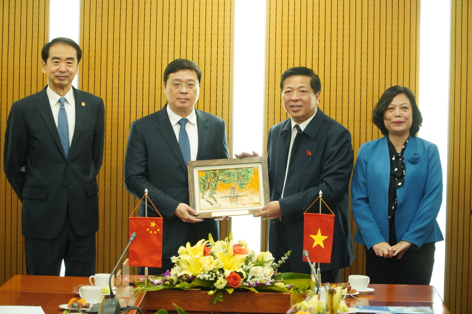 Tổng giám đốc VIMC Lê Anh Sơn tặng quà lưu niệm cho ông Vi Thao, Chủ tịch Khu tự trị dân tộc Choang, Quảng Tây.