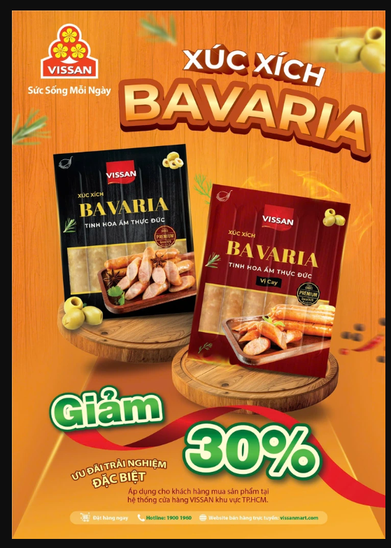 Ưu đãi trải nghiệm đặc biệt: Giảm giá trực tiếp lên đến 30% cho các sản phẩm Chả Chiên và Xúc xích Bavaria tại hệ thống cửa hàng VISSAN khu vực TP.HCM. Mua 2 tính tiền 1: Áp dụng cho dòng sản phẩm Mỡ heo Bếp Việt, Giò bì Ớt xiêm, Hạt Nêm Chuẩn Vị Thịt và Nước Xương Hầm tại hệ thống cửa hàng VISSAN khu vực TP.HCM.