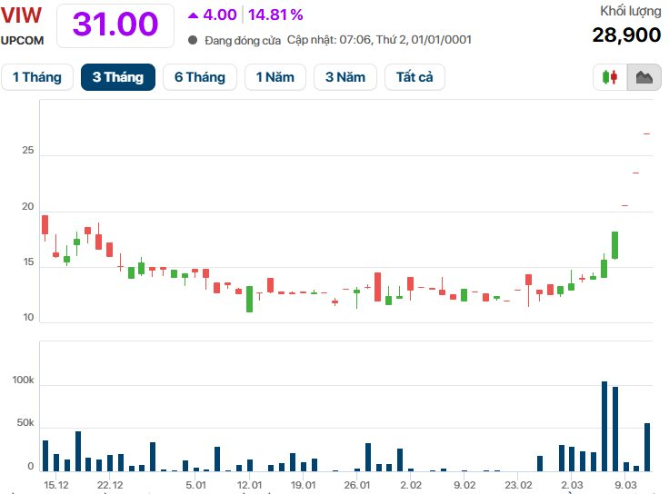 Cổ phiếu VIW bắt đầu tăng mạnh từ ngày 5/3, sau 6 phiên cổ phiếu này đã tăng 118%.