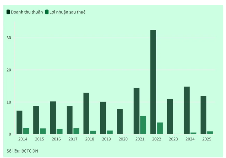 Dù kết quả quý cuối năm không khả quan, tính chung lũy kế cả năm 2025, lợi nhuận của doanh nghiệp vẫn có sự tăng trưởng. Cụ thể, doanh thu thuần cả năm đạt gần 12 tỷ đồng, giảm gần 19% so với năm 2024, nhưng lợi nhuận sau thuế lại đạt hơn 874 triệu đồng, tăng hơn 69%.