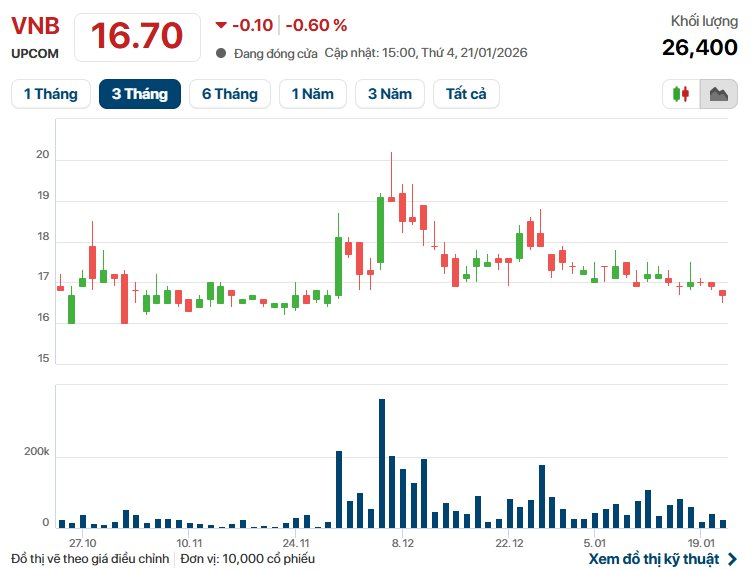 Trên thị trường chứng khoán, cổ phiếu VNB kết phiên 21/1 ở mức 16.700 đồng/cp.