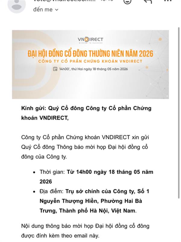 Ko thấy đc VND mời cổ đông đi họp qua email/ qua sms