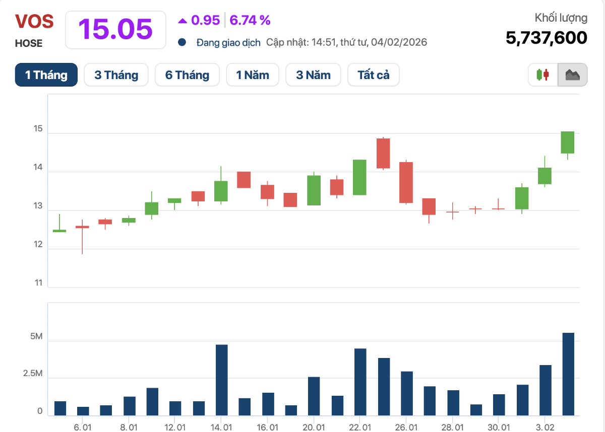 Theo quan sát, cổ phiếu VOS ghi nhận diễn biến kém tích cực trong năm 2025. Tuy nhiên, trong những phiên đầu năm 2026, cổ phiếu này bắt đầu có dấu hiệu phục hồi nhờ tin tức bán tàu. Dù vậy, nhìn chung kết quả kinh doanh không được “sáng”.