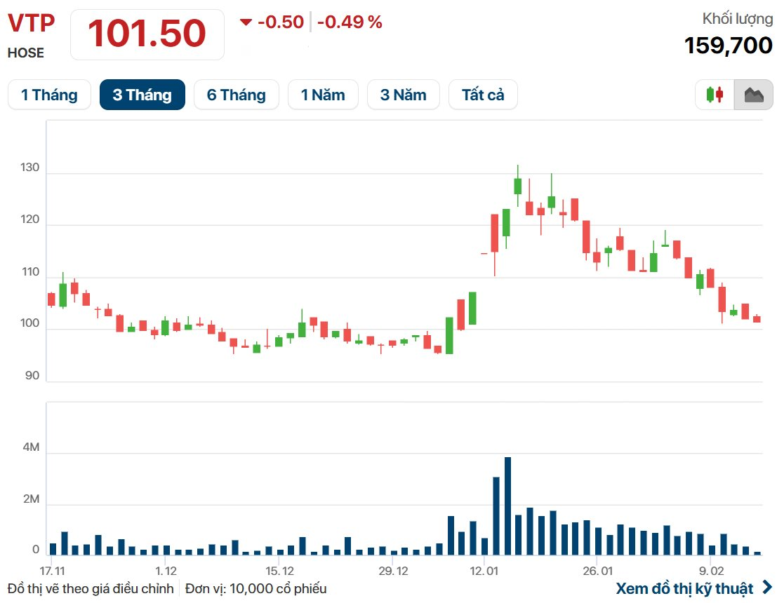 Giá chào bán của VTP chỉ bằng 1/10 giá thị trường hiện tại của cổ phiếu VTP.