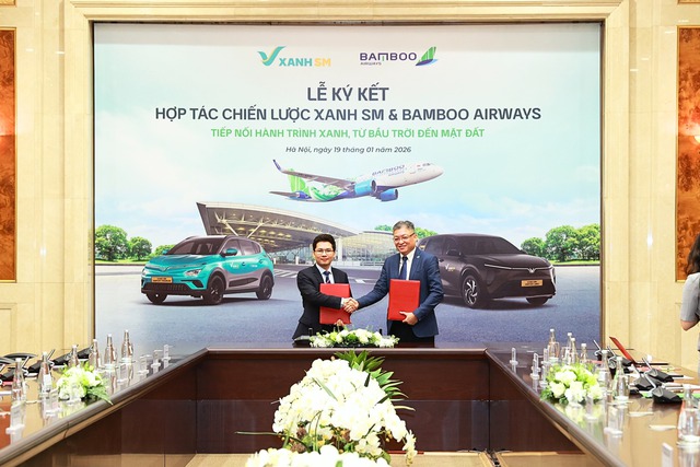 Sáng 19/1 tại Hà Nội, Bamboo Airways và Công ty Cổ phần Di chuyển Xanh và Thông minh GSM (Xanh SM) đã ký kết Biên bản ghi nhớ hợp tác, thống nhất triển khai các chương trình hợp tác chiến lược trong năm 2026.