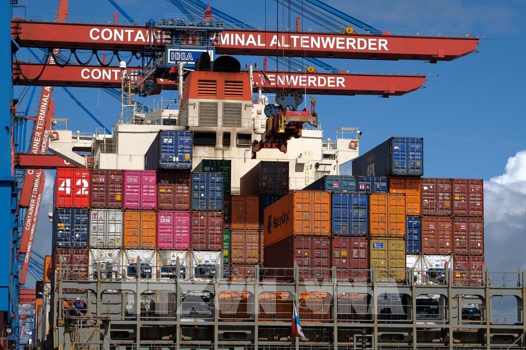Trong ảnh: Bốc dỡ hàng hóa từ tàu contenơ tại cảng ở Hamburg, miền Bắc Đức. Ảnh: AFP/TTXVN
