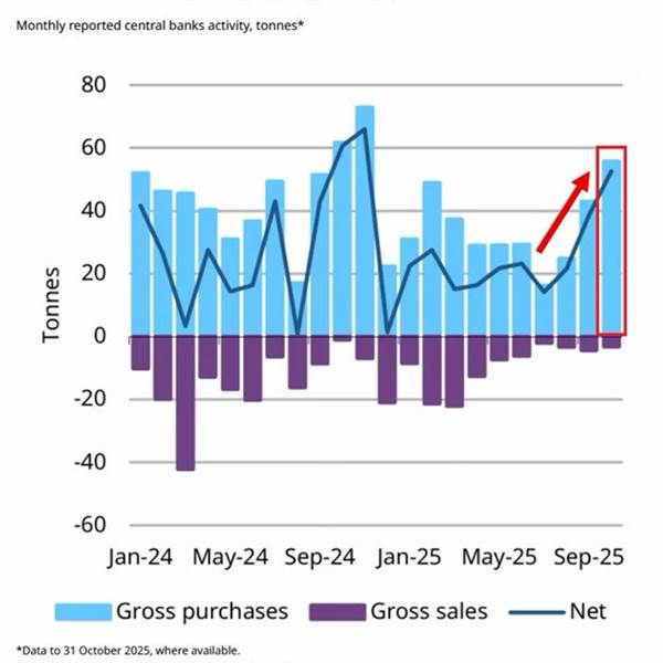 📍Các ngân hàng trung ương đang tăng cường mua vàng: Các ngân hàng trung ương toàn cầu đã mua +53 tấn vàng trong tháng 10, mức cao nhất kể từ tháng 11 năm 2024. Con số này đánh dấu mức tăng +194% so v...Thêm