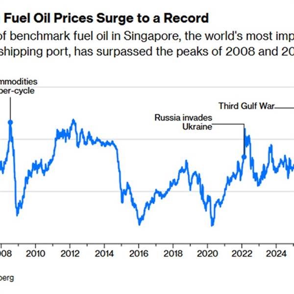 Giá dầu nhiên liệu tại Singapore, cảng tiếp nhiên liệu quan trọng nhất thế giới, đã lên mức kỷ lục 140 đô la Mỹ/thùng. Điều này đánh dấu mức tăng 146%...Thêm