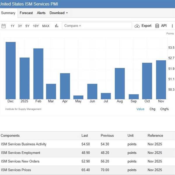 Chỉ số PMI Dịch vụ của Mỹ tăng nhẹ lên 52,6 điểm trong tháng 11/2025, so với 52,4 điểm của tháng 10. Mức trên 50 tiếp tục phản ánh khu vực dịch vụ duy trì tăng trưởng, nhưng tốc độ mở rộng chậm hơn so...Thêm