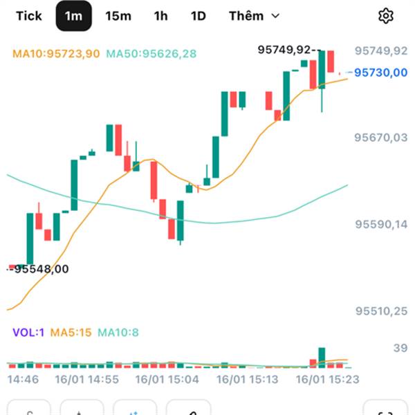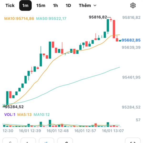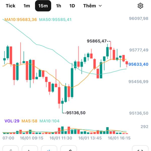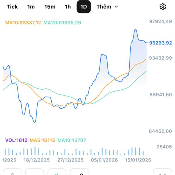 Hiện tại, Bitcoin đang giữ vững trên mức 95K, mức giá từng chặn mọi đợt tăng từ đầu tháng 12/2025. Việc phá vỡ vùng này cho thấy quyền kiểm soát đã trở lại tay phe mua.