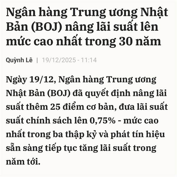 Nghe đồn, sáng nay Nhật Bản đã tăng lãi suất lần đầu sau thời gian khá dài 👏👏👏 Đây là những điều bất biến có thể học, còn những thứ biến thiên thì vứt đi, chả có quy luật gì đâu. Lãi suất trong nướ...Thêm