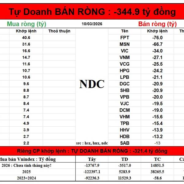 Năm Dòng Kẻ NDC: Kết phiên 10/3/2026 - Nhận định thị trường Chứng khoán hôm nay - NDC Chứng Khoán, Crypto, Vàng