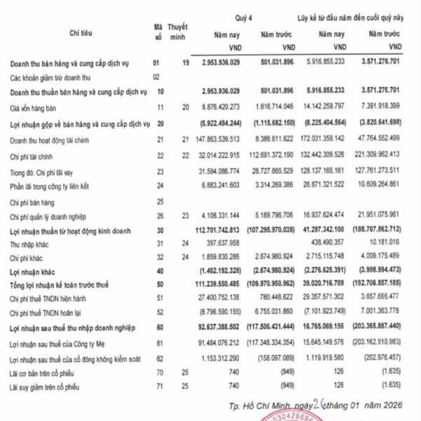 Giải trình LNST tại BCTC Quý 3 năm 2025