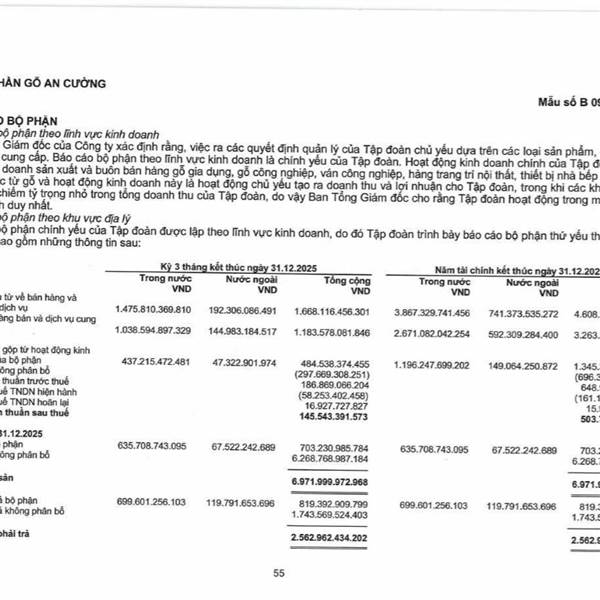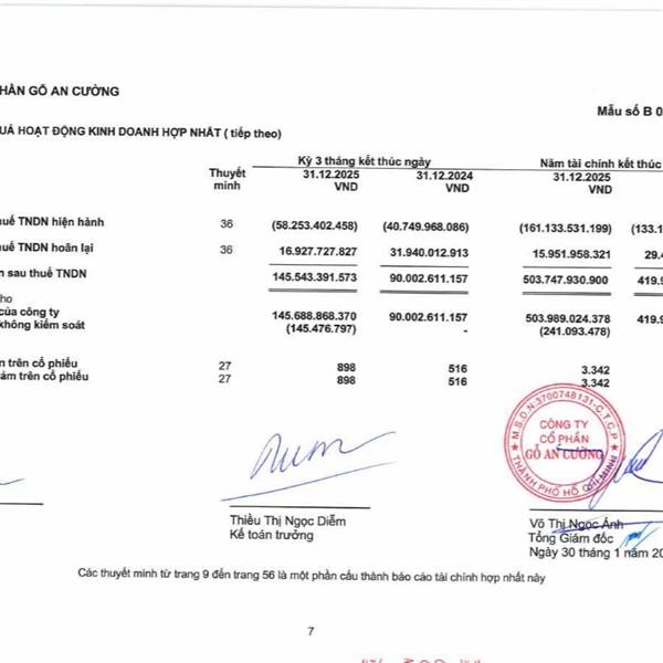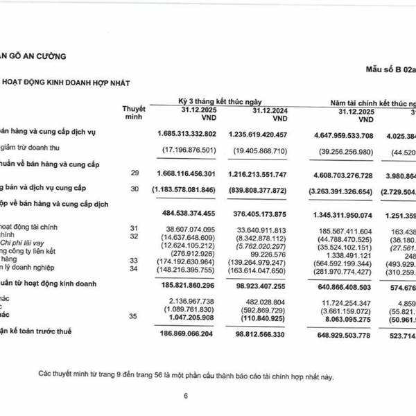 CTCP Gỗ An Cường (ACG) công bố kết quả kinh doanh quý IV/2025 vớ...Thêm