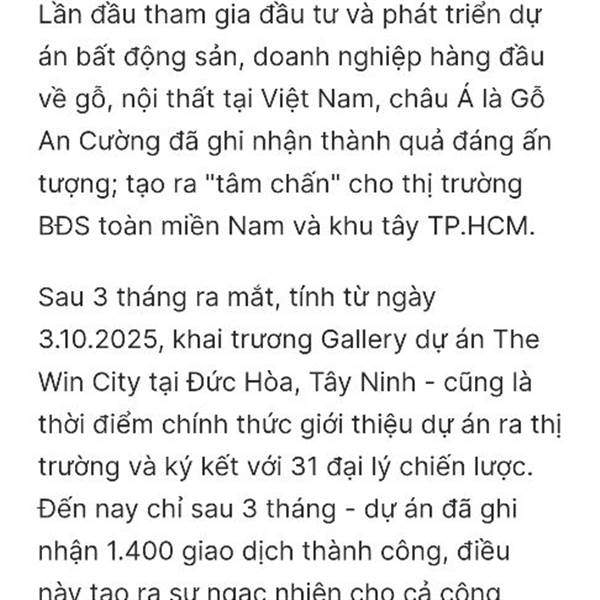 Khi một thương hiệu vật liệu – nội thất hạng A quyết định bước vào vai trò chủ đầu tư bất động sản, thị trường có quyền đặt câu hỏi. Nhưng với The Win City, Gỗ An Cường đang cho thấy sự cẩn trọng, tư duy làm sản phẩm và nền tảng tài chính vững chắc có thể tạo nên “quả ngọt” ngay từ bước đi đầu tiên.