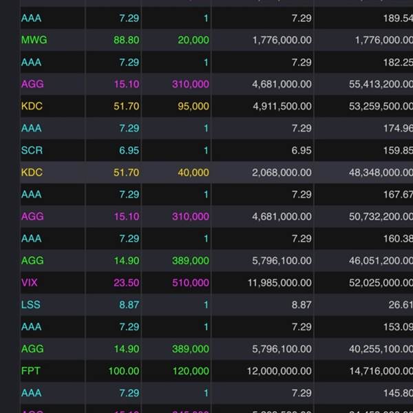 Giai đoạn vùng đáy này AGG liên tục có những phiên giao dịch thoả thuận hàng triệu cổ với giá tím trong phiên.Không biết ý đồ của lái ntn. Phiên hôm 9/1 giao dịch thoả thuận khoảng 6tr cổ.2 tuần nữa s...Thêm