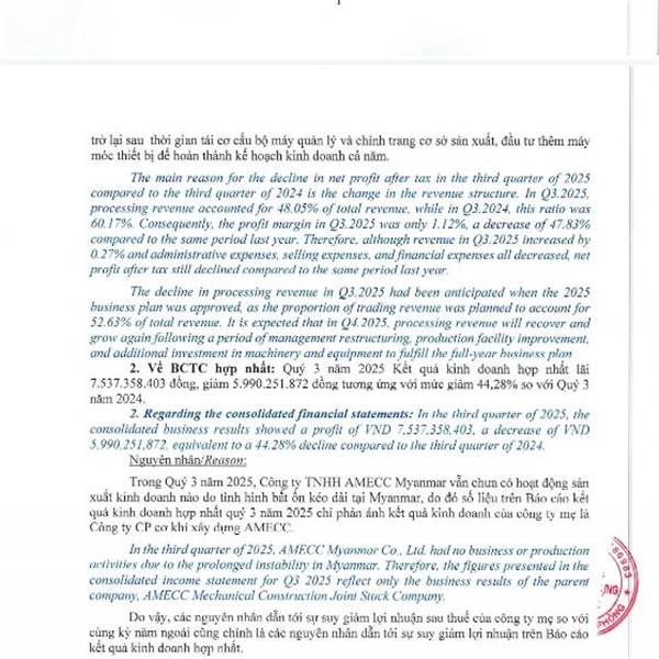 Đính chính Báo cáo tài chính quý 2/ 2025