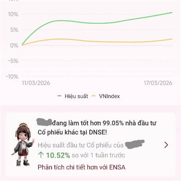 Mấy hôm nữa cho lái xem tk đánh tốt hơn 99.8% nhà đầu tư.
