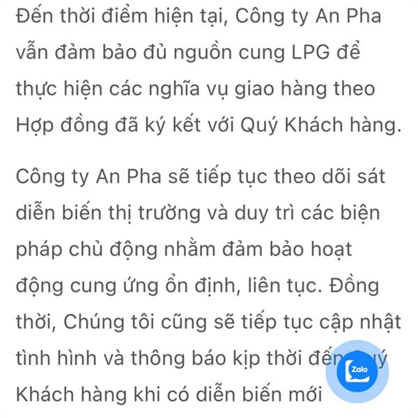 Anpha Petrol thông báo về tình hình nguồn cung của Công ty – ANPHA PETROL