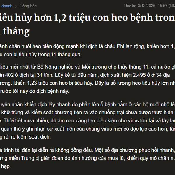 Đà tăng xuất hiện trong bối cảnh nguồn cung giảm, chi phí chăn nuôi cao và dịch tả heo châu Phi diễn biến phức tạp tại nhiều địa phương.