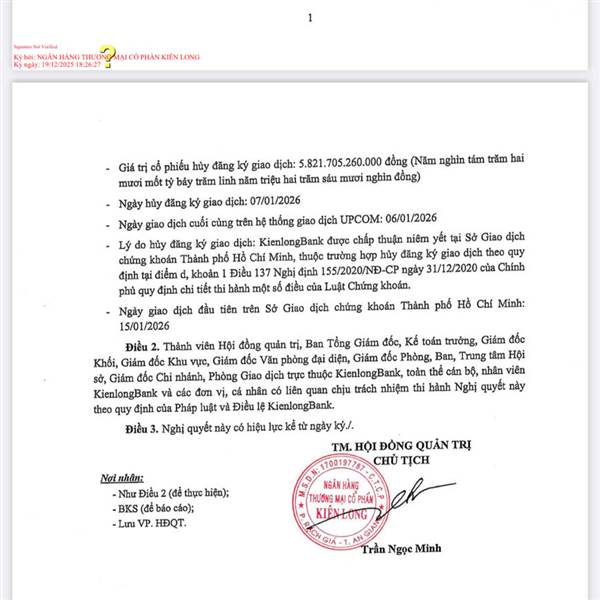 Ngân hàng TMCP Bản Việt (BVBank - Mã: BVB) mới đây đã công bố tài liệu phục vụ Đại hội đồng cổ đông (ĐHĐCĐ) bất thường năm 2025. Cuộc họp dự kiến diễn ra vào ngày 26/12/2025, tại Nhà khách T78 - 145 Lý Chính Thắng, Phường Xuân Hòa, TP HCM.