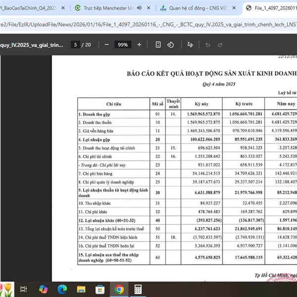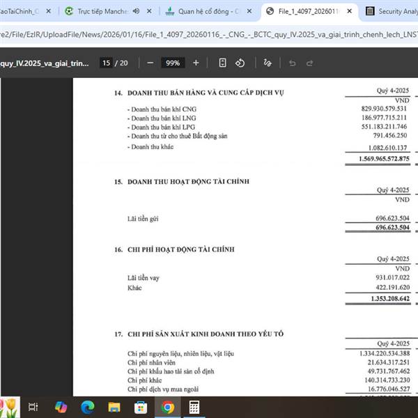 Core chính đền từ doanh thu LNG quý 4 ( tăng trưởng 1,062.5%)