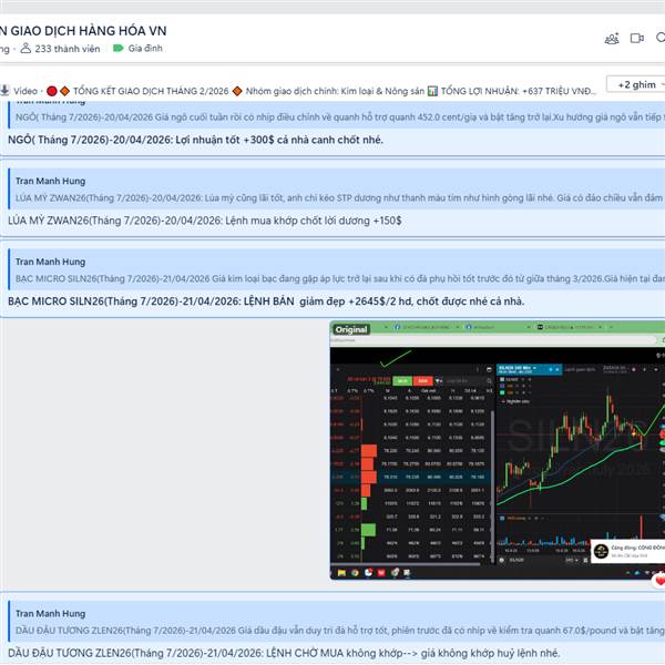 Khô đậu tương giá vẫn tiếp tục hỗ trợ tốt, do yếu tố mùa vụ nông sản.Hơn nữa dòng tiền đang rút bớt từ nhóm kim loại-rủi ro vùng giá cao về các nh...Thêm