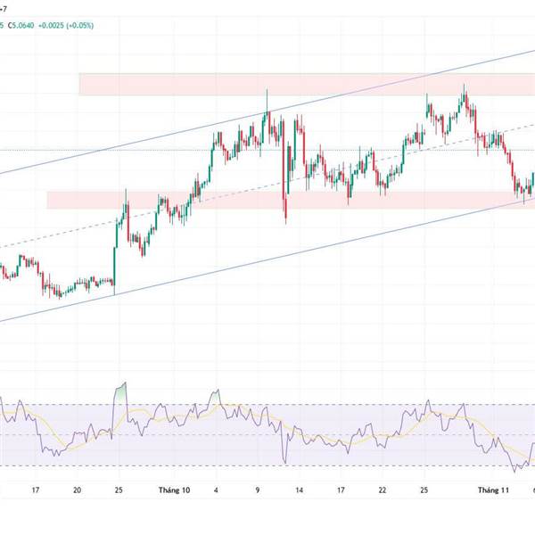 ▪️Giá thu hẹp lại kênh biên độ sideway ( 4.82 - 5.28 )