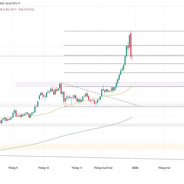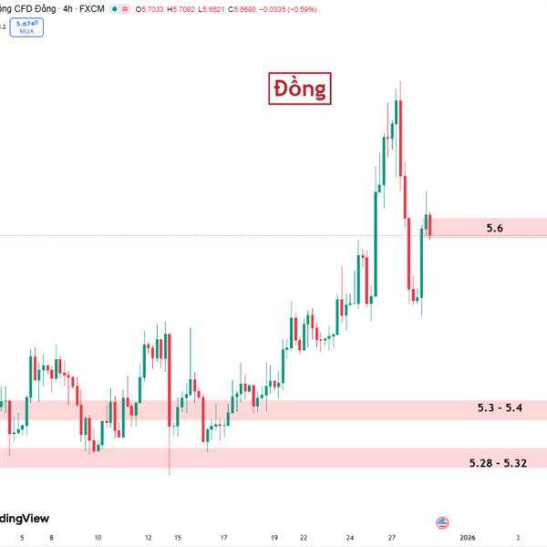 Giá đồng đang ghi nhận áp lực chốt lời ngắn hạn sau cú bứt phá mạnh trước đó, thể hiện qua nến đảo chiều giảm tại vùng giá cao. Diễn biến này phản ánh trạn...Thêm