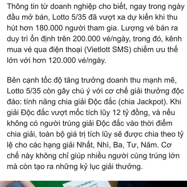 Quá khủng ict ơi m.soha.vn/...oi-san-doc-dac-198251003221231021.htm Trong năm 2024, Vietlott cũng chi trả hơn 636 tỷ đồng hoa hồng và phí ủy quyền trả thưởng cho đại lý trên toàn quốc, tăng 134 tỷ đồng so với năm 2023.